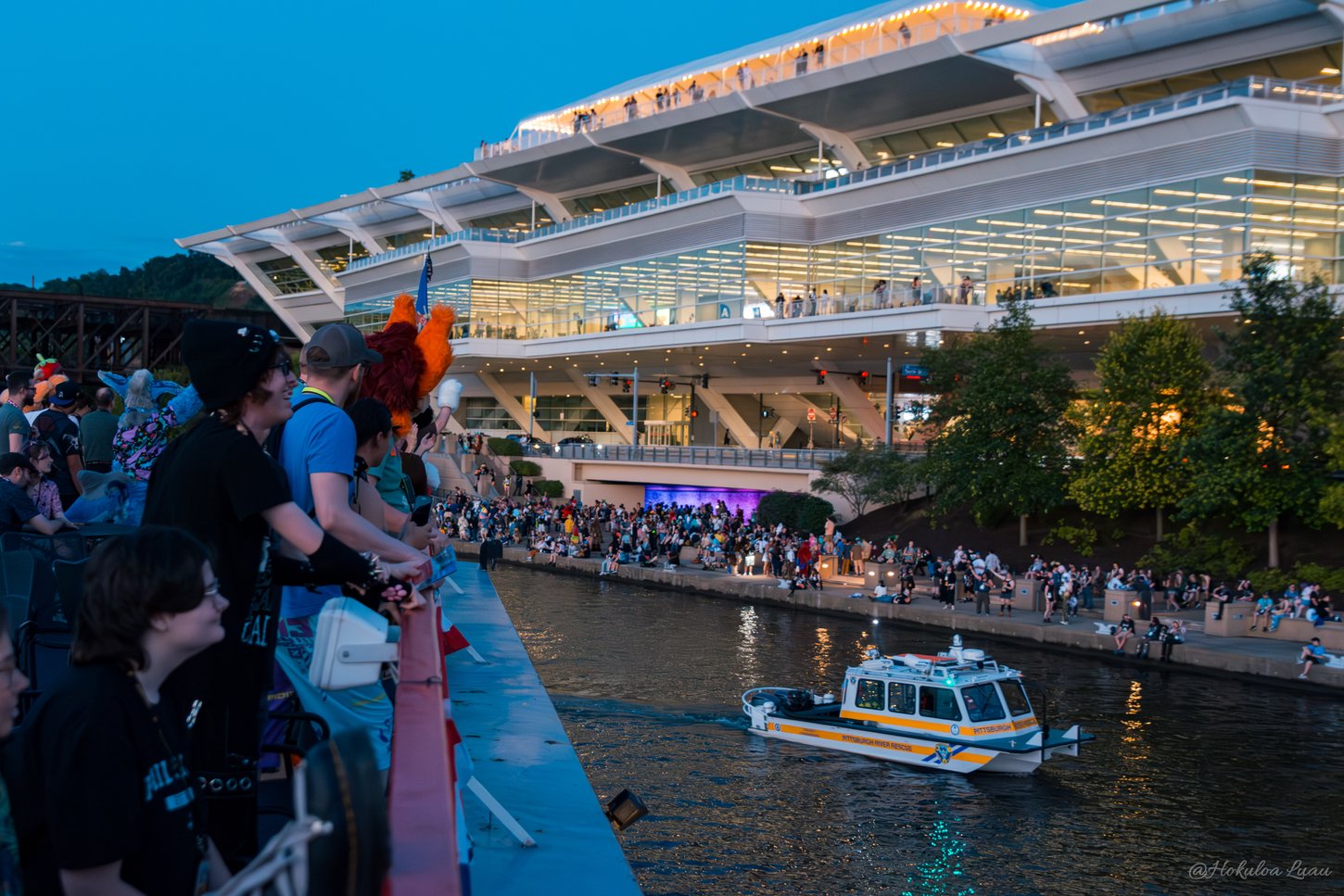 Boarding takes place at the Convention Center Riverfront Plaza, right outside the convention center. Fursuits are welcome aboard any cruise, and there will be water provided on-board.